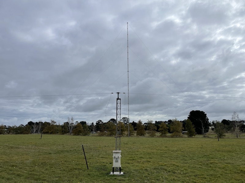The 4 x 5 element stack of yagis at the VK3MO primary location is capable of changing the radiation angle from 5 degrees to 20 degrees by selecting antennas at different heights. To produce radiation at a take off angle of 2 degrees a secondary location is used with a 6 over 6 yagi array on sloping ground to the East. This antenna is mostly fixed on long path to Europe fed with a wspr beacon running 24/7 using Ian’s wife’s call sign VK3QN. WSPR beacons are used at both locations to enable collecting a large amount of useful data without being time intensive.