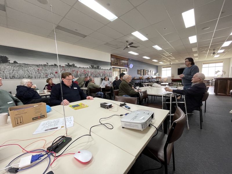 There were some brief presentations on a home brew morse practice set with an Arduino that displayed the keyed code and a talk on the sBitx software defined transceiver.