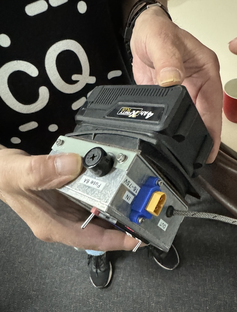 In the show and tell part of the meeting, David, VK3KR, showed a portable power pack he made that takes a portable power tool battery from Aldi and steps the voltage down to 12V suitable for radio gear.