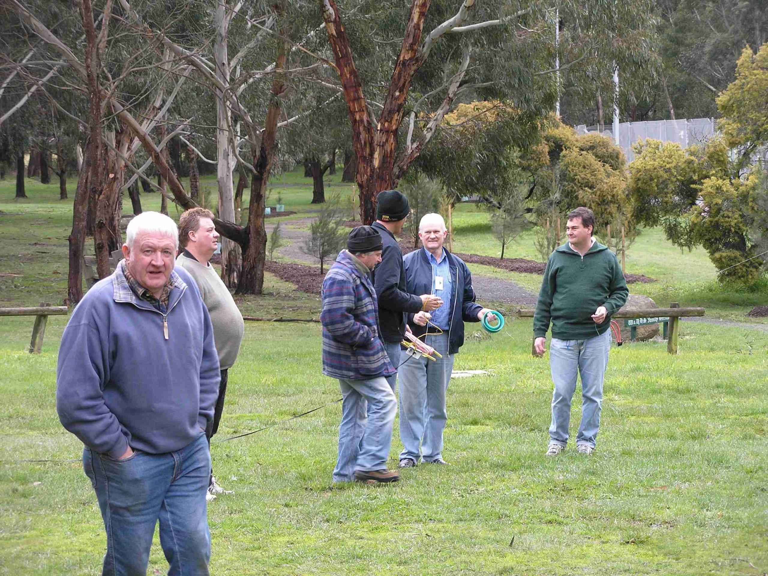 Ray VK3YAR, Peter VK3TQ, Joe VK3GFA, Ron VK3ZJ, Graeme VK3NE and Garry VK3GSG in deep antenna planning thoughts!