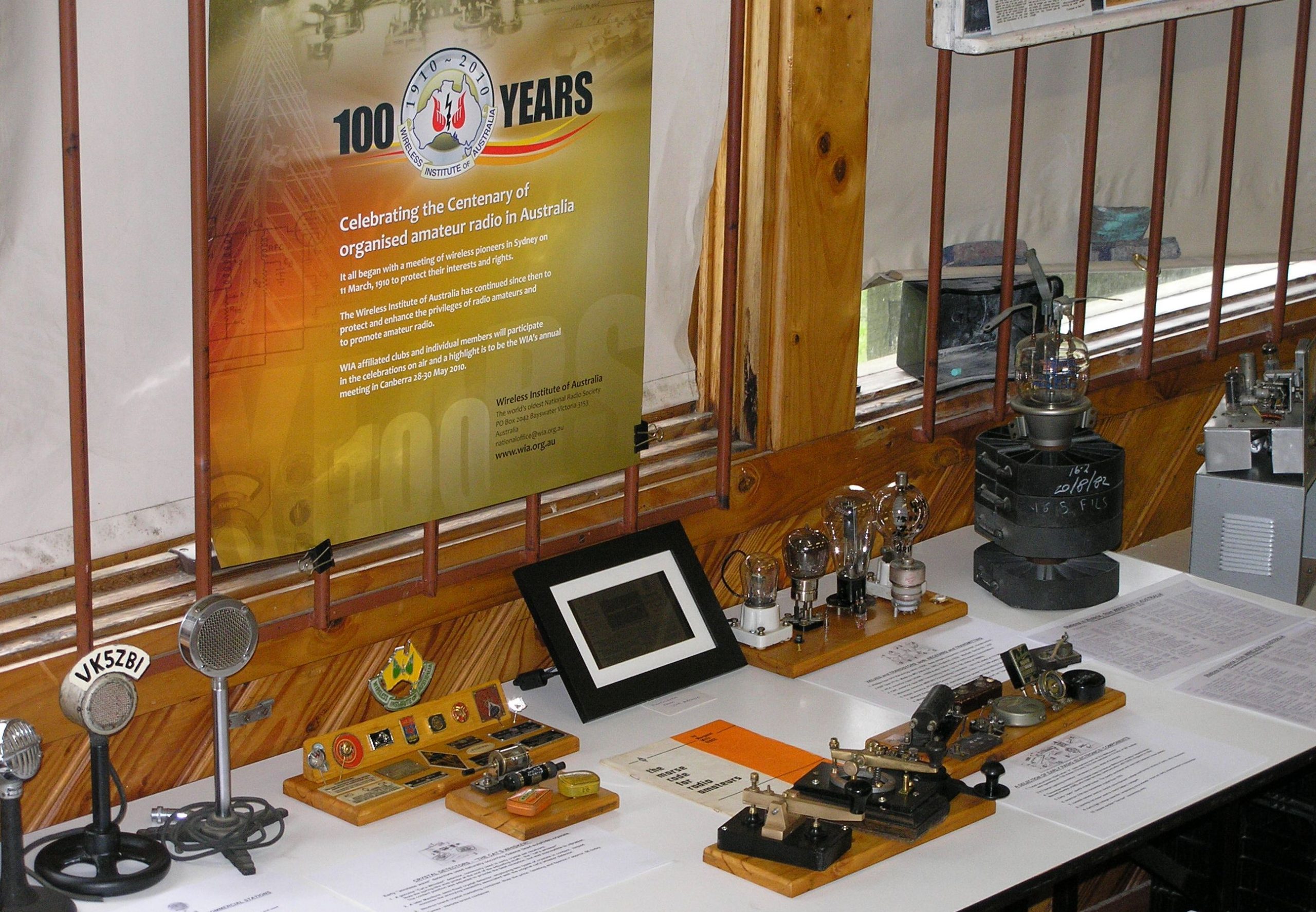 The Macedon Ranges Amateur Radio Club successfully operated VK100WIA from 0000 UTC Wednesday 18th to 2359 UTC Friday 20th August 2010. Prior to the event, the club’s committee decided to operate the special event call sign from member’s shacks, for the first two days. The main club focus was to involve as many members as possible on Friday, at the Woodend Scout hall.